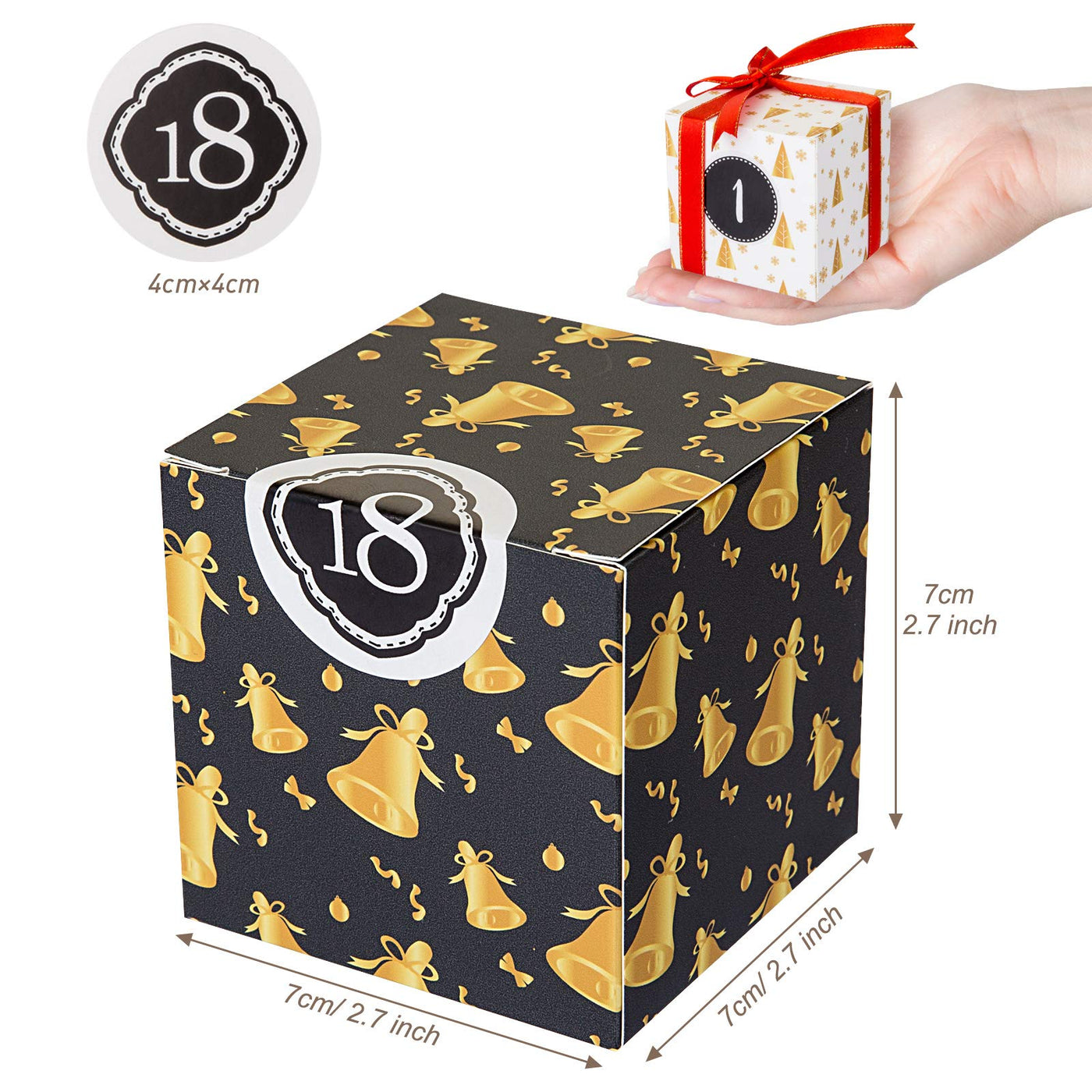 Q: How many advent calendar boxes are included in the package?A: The package includes 24 printed cardboard DIY advent calendar boxes.