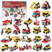 Q: What kind of toys are included in the Advent Calendar?A: The Advent Calendar includes 24 toy vehicle building blocks, consisting of 12 fire trucks and 12 construction vehicles, each with individual instructions for building.