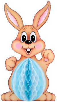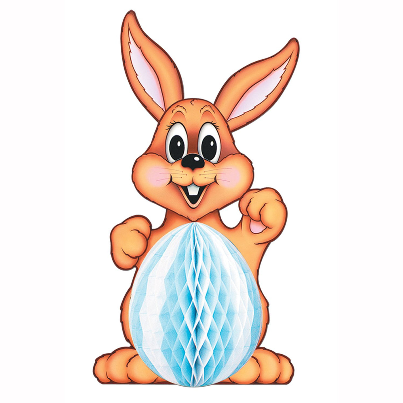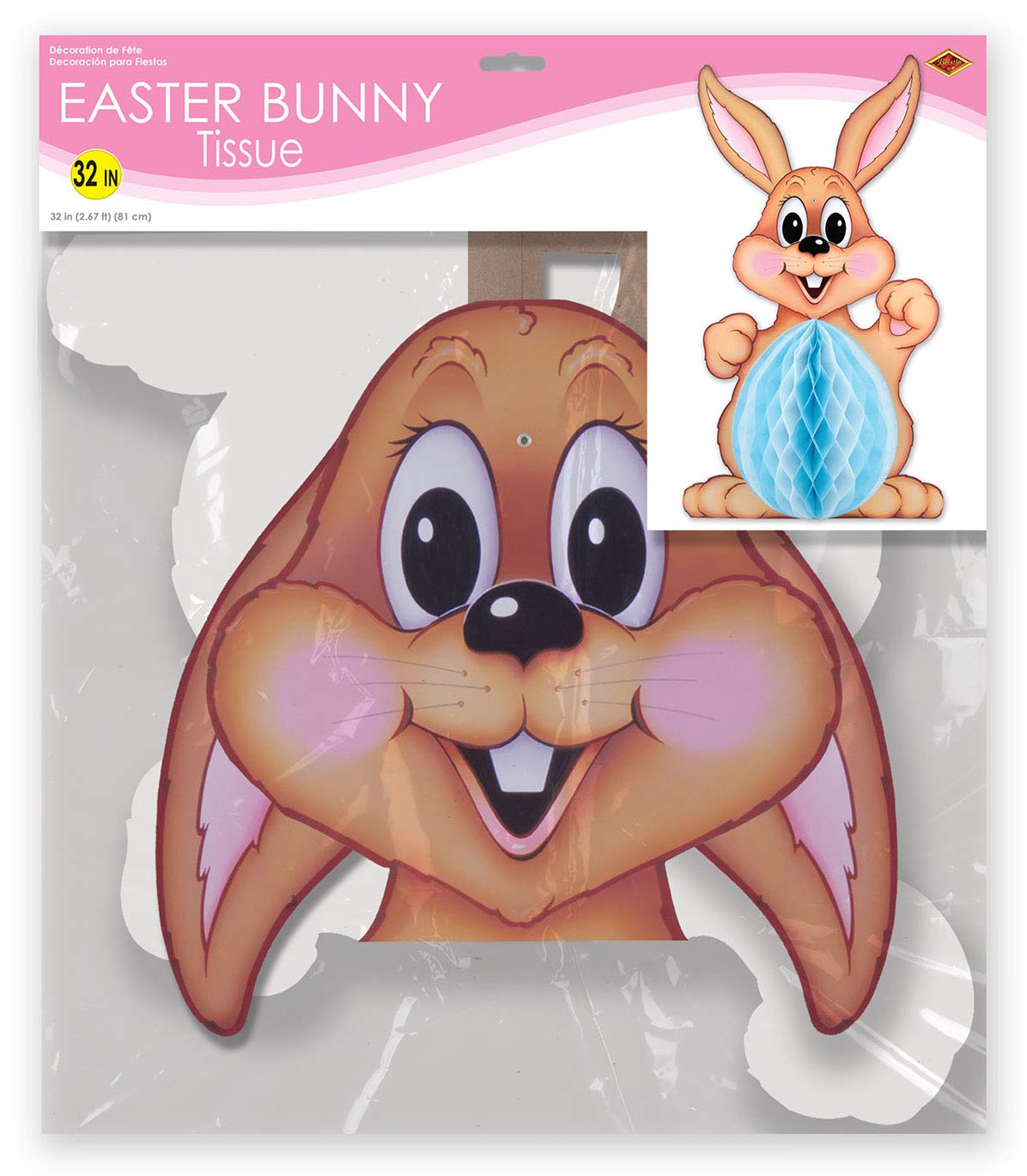 Beistle 44040 Large Tissue Bunny. This large brown bunny with a tissue tummy would make a great decoration for your Easter celebration! The tissue in the middle comes in assorted colors of light blue with white, pink with white and yellow with white. It measures 32 Inch tall.
