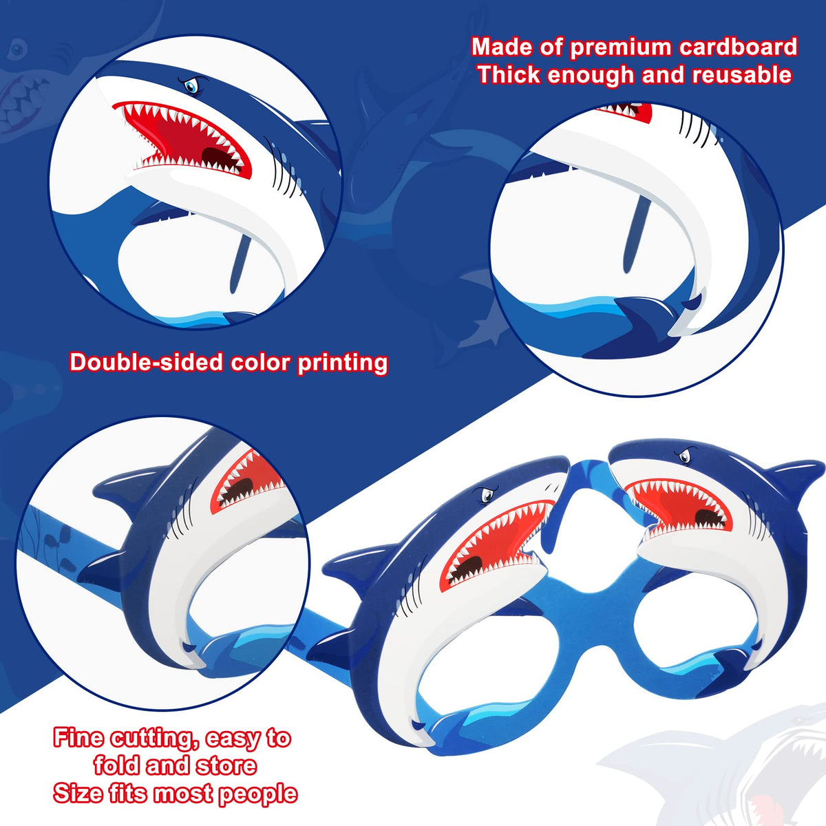 Liliful 32 Pcs Shark Party Eyeglasses Kids Shark Paper Eyeglasses Shark Themed Party Paper Glasses Shark Paper Glasses Photo Boo