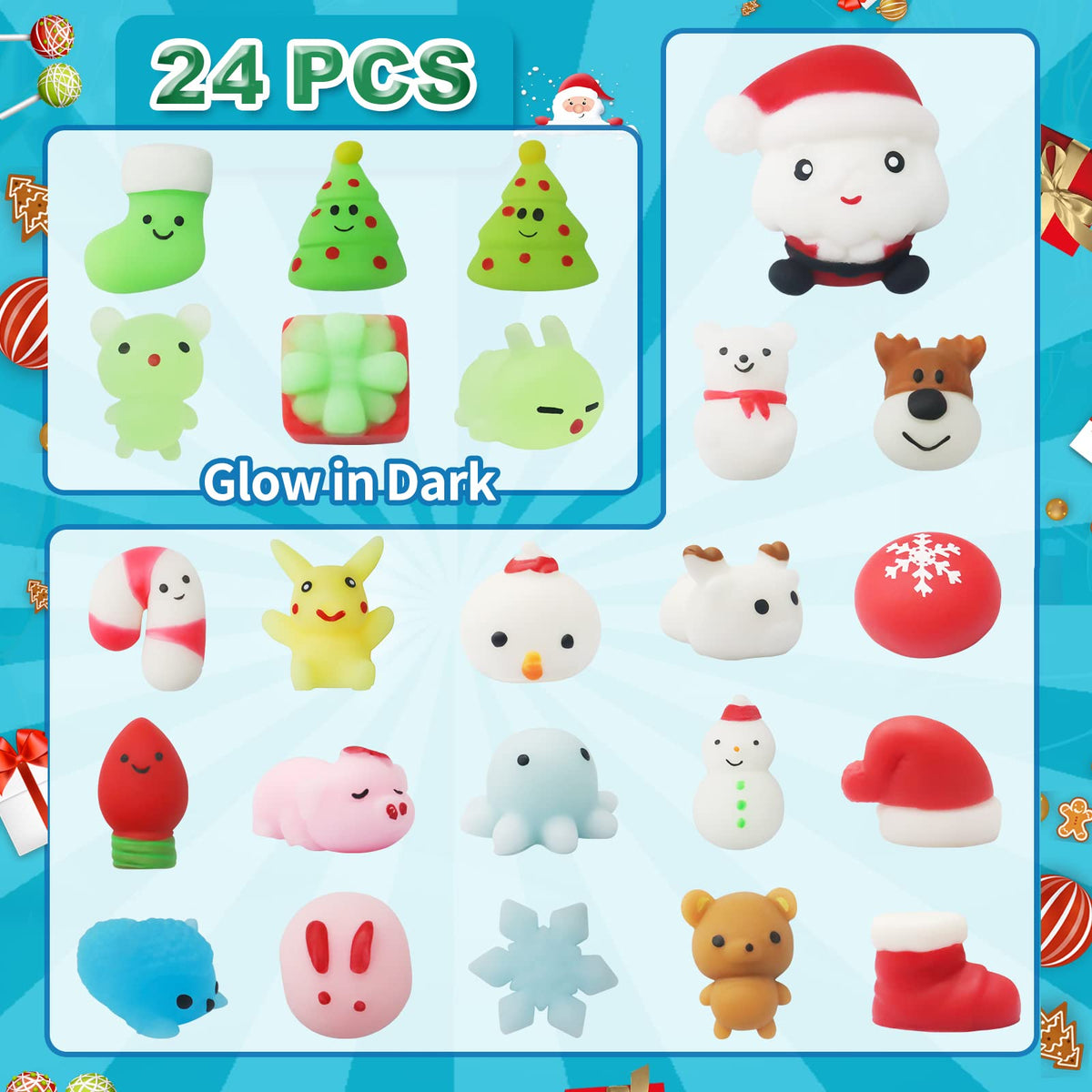 Manaror Advent Calendar 2024 Christmas Countdown 24 Days Luminous Adorable Squishies Non-Toxic Relief Stress Different Surprise Kawaii Toys For Girls Boys Kids Adults