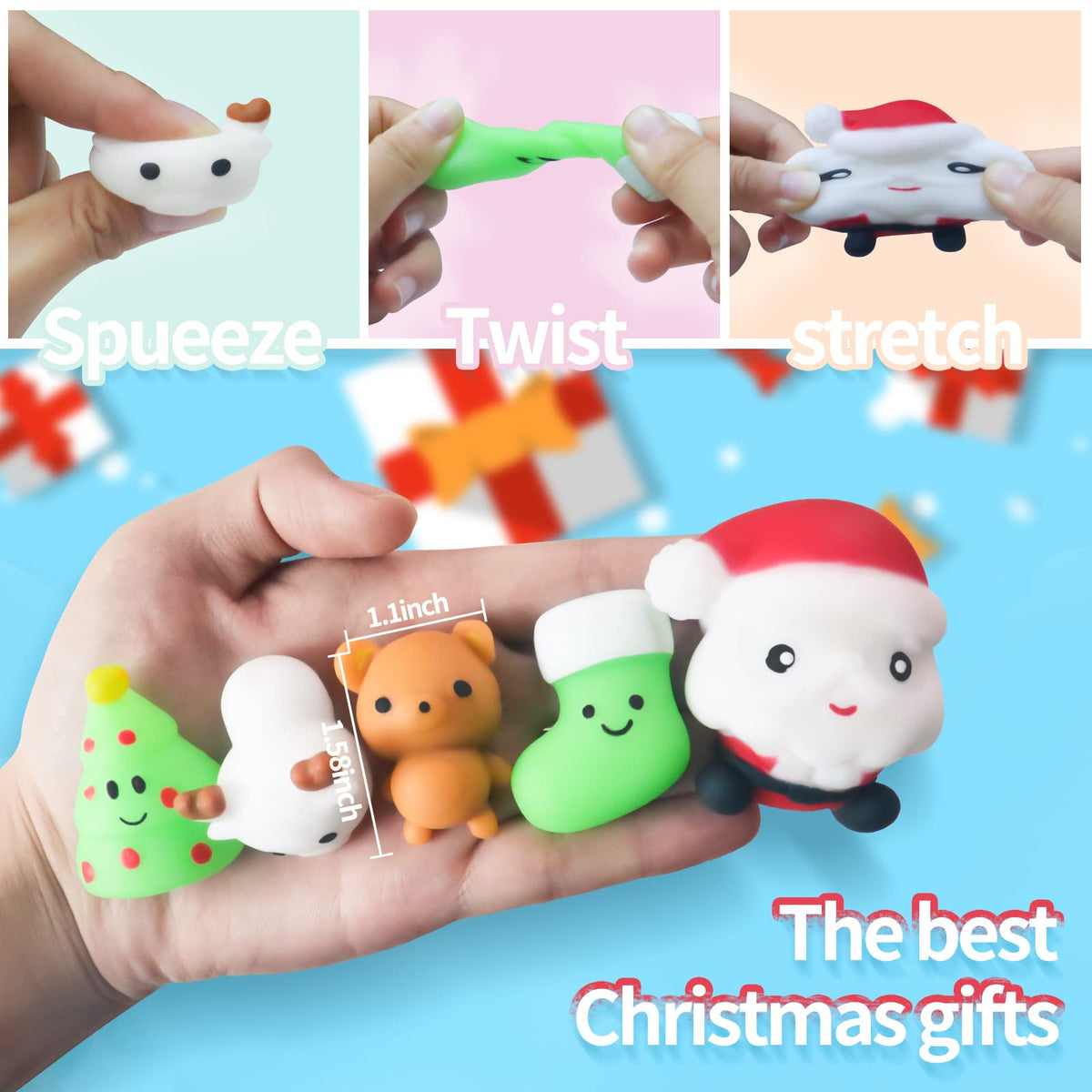 Q: What makes these toys unique compared to other advent calendars?A: These toys stand out because they not only provide daily surprises leading up to Christmas but also feature unique mochi designs that glow in the dark. They combine education and entertainment, helping to enhance children's creativity and logical thinking.