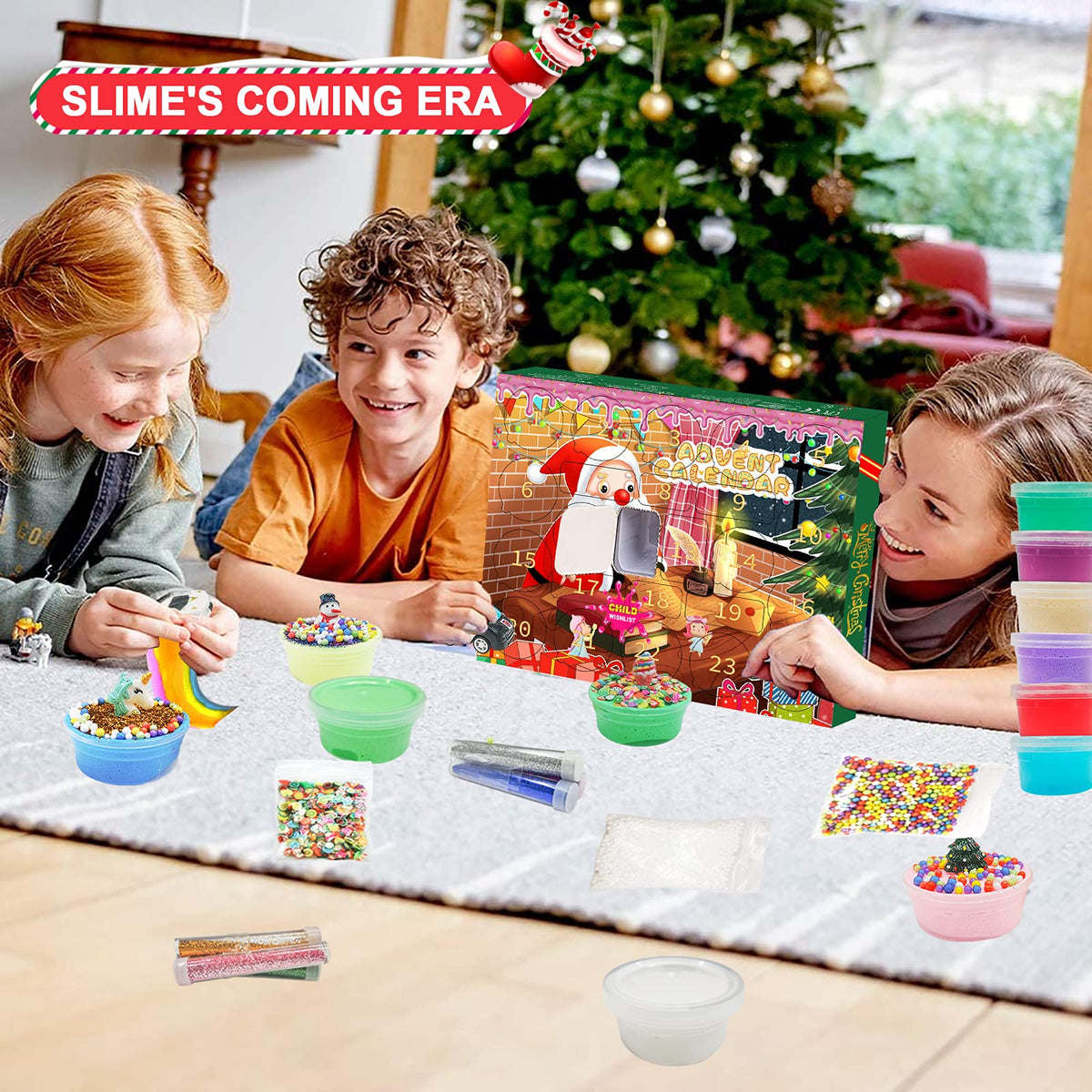 Q: How does the Advent Calendar enhance the Christmas experience for kids?A: The Advent Calendar enhances the Christmas experience by providing a surprise each day leading up to Christmas. Each of the 24 doors reveals a new slime accessory, keeping excitement high and encouraging family interaction during the holiday season.