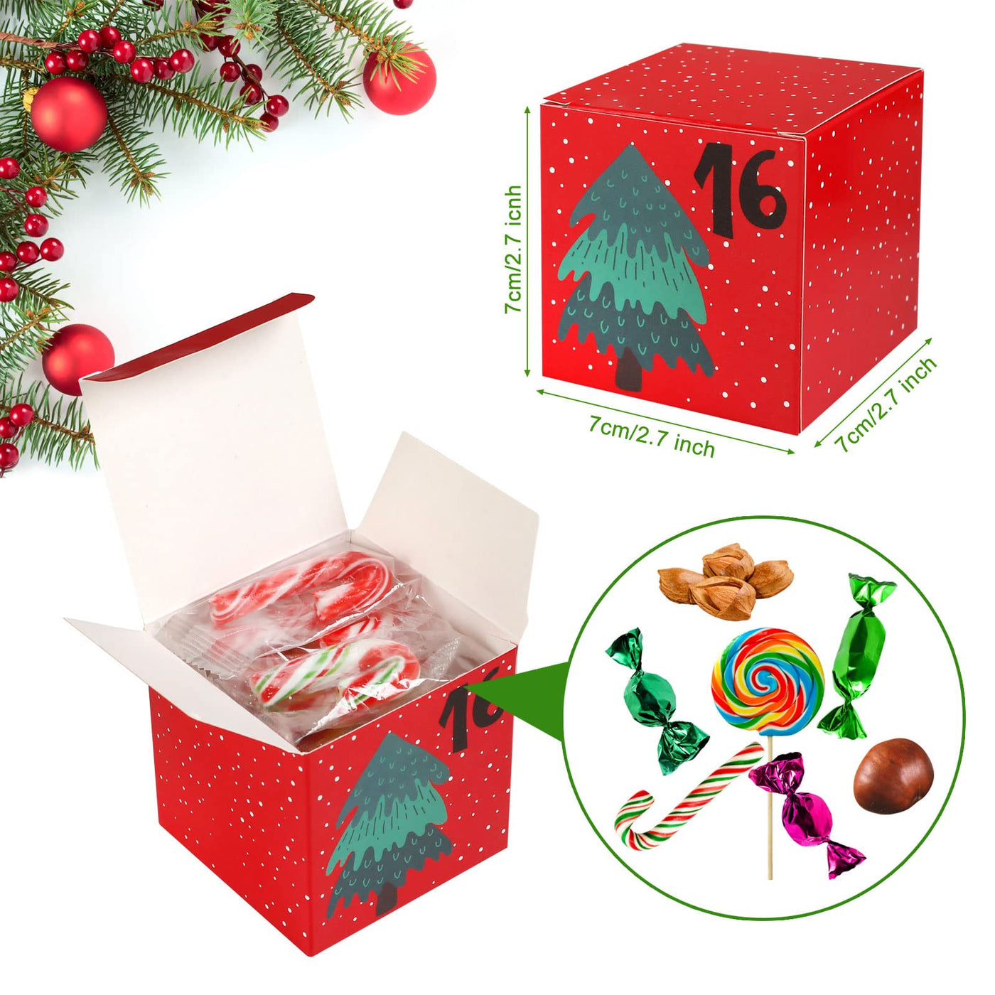 Naler Christmas Advent Calendar 24 Days Countdown To Christmas Cardboard Treat Gift Box For Xmas Holiday Party Present Decoration Features: - Made Of Cardboard, Thick, Solid, Durable, Reusable And Eco-Friendly. - Printed With Christmas-Style Colors And Patterns, Like Snowman, Santa Claus, Reindeer And Other Christmas Cute Elements. - Perfect For Filling In With Small Surprise Gifts, Like Earrings, Necklaces, Bracelets, Rings, Toys, Lipsticks, Coins, Candies, Biscuits, Chocolate, Etc. - It Is A Best Choice To Use It As A Xmas Decoration, Adding A Christmas Embellishment To Your Rooms, Also Providing A Festival Atmosphere For Your Christmas, You And Your Family And Friends Can Receive Surprise Gifts In The 24 Days Countdown To Christmas, And Celebrate Christmas Happily! Specifications: Material: Cardboard Size: 7Cm*7Cm*7Cm / 2.75 X 2.75 X 2.75 Color: Red, Green, Black, White, Coffee Package Includes: 24Pcs Christmas Advent Calendar Gift Box