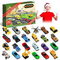 Q: What types of vehicles are included in the Advent Calendar?A: The Advent Calendar includes a variety of themed die-cast vehicles such as sports cars, fire trucks, ambulances, helicopters, construction vehicles, and F1 cars, offering a diverse play experience.