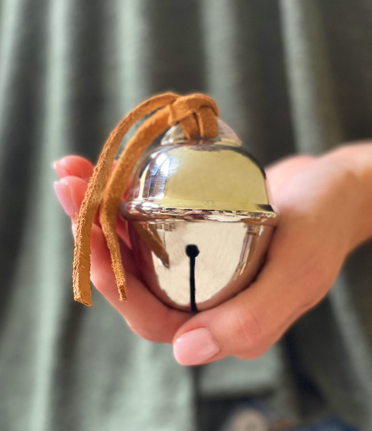 Q: What is included in the Polar Exp Sleigh Bell Gift Set?A: The Polar Exp Sleigh Bell Gift Set includes 2 large silver sleigh bells, each with a premium leather harness strap, a velvet gift bag, and individually boxed in a red and white striped gift box. Additionally, each set comes with a unique Certificate of Authenticity detailing the elf who made the bell and one of Santa's reindeer.