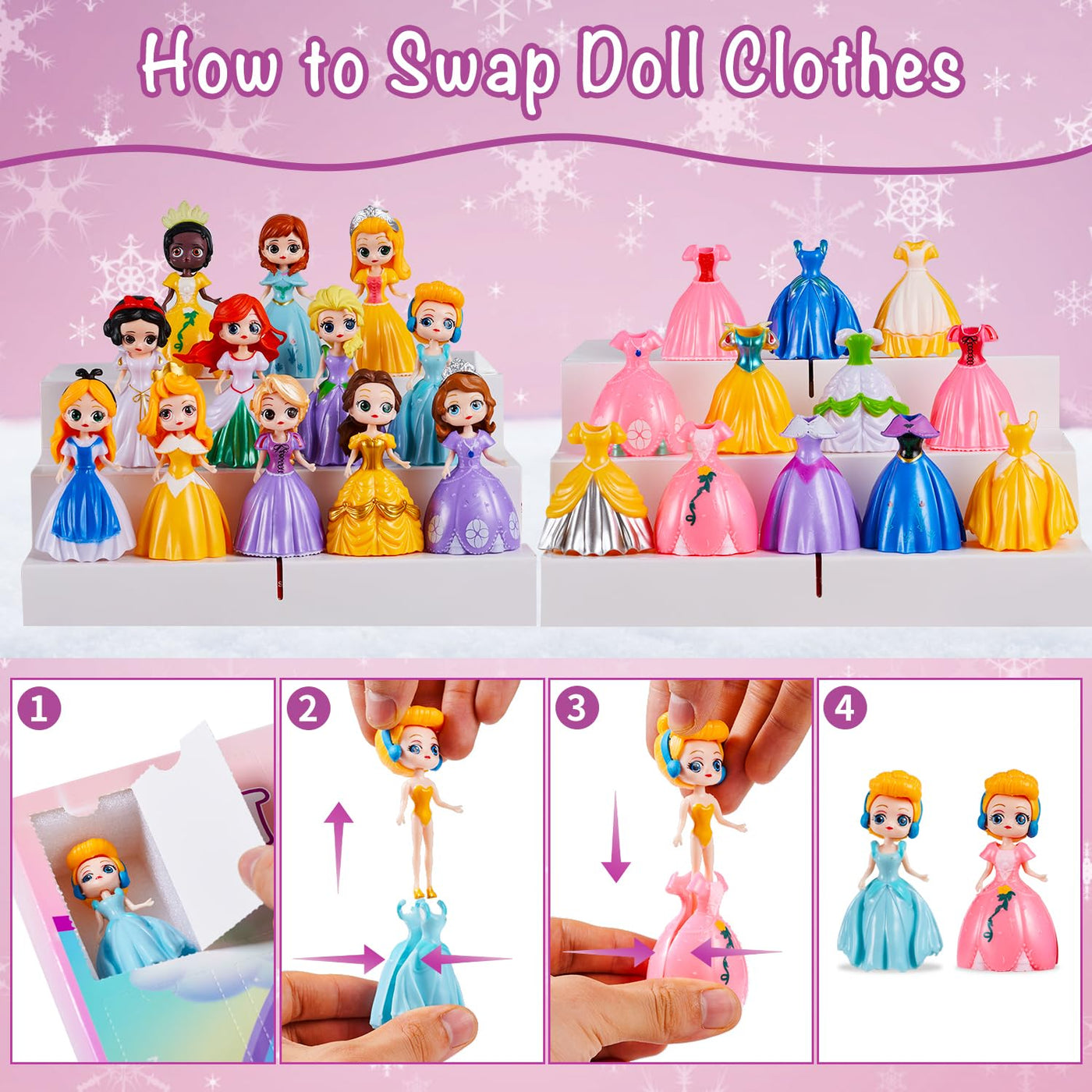 Princess Advent Calendar For Girls, 24 Days Princess Transformable Toys And Clothes Countdown Calendars Xmas Gifts For Girls Age