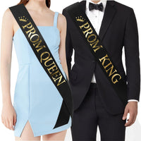 'Prom King' And 'Prom Queen' Sashes - Graduation Party School Party Accessories, Black With Gold Print