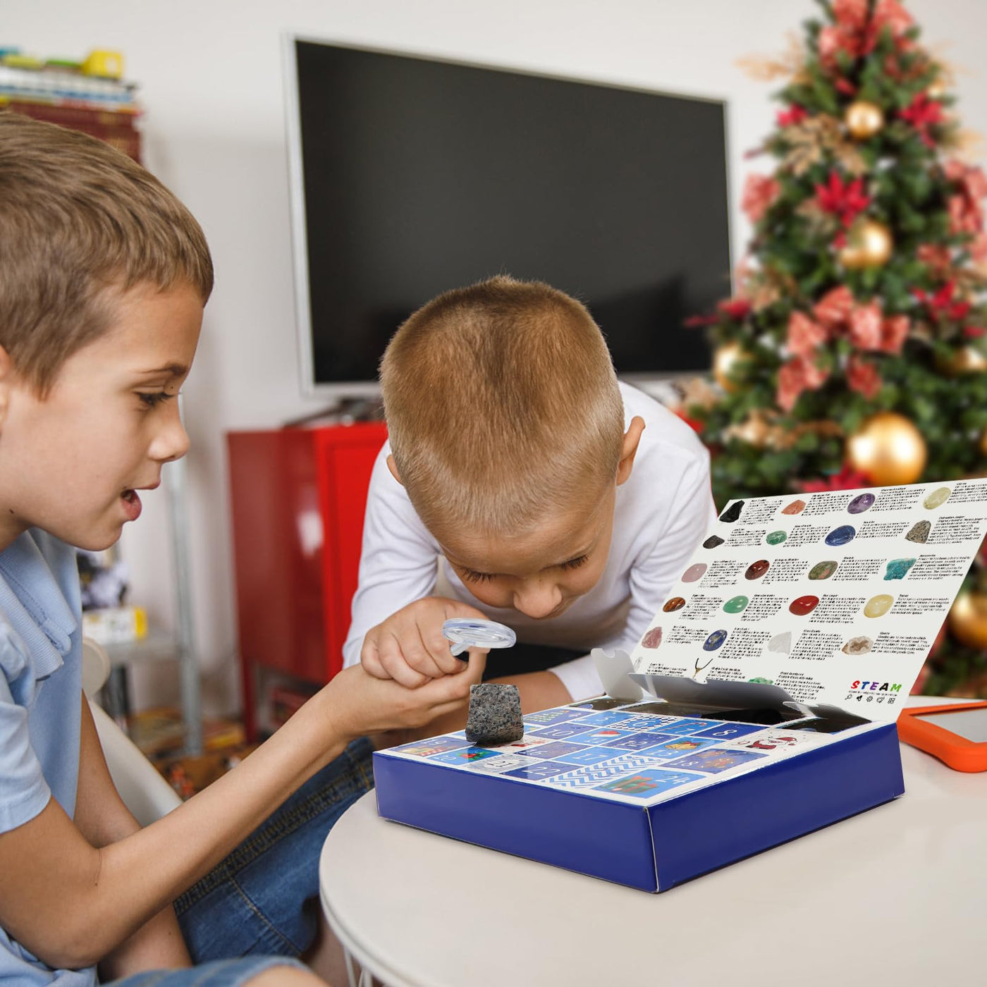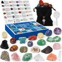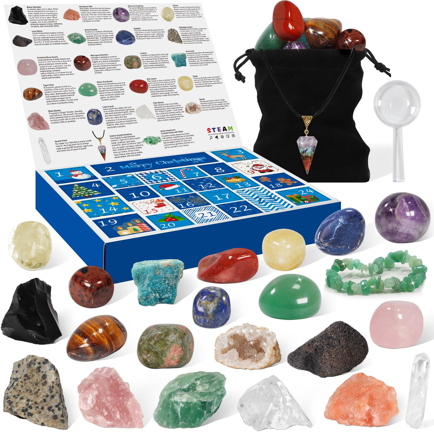 Q: What educational benefits does the Pukamam Crystal Advent Calendar provide?A: This advent calendar encourages learning about geology and mineralogy through hands-on exploration of fossils, rocks, and crystals. It includes a professional instruction sheet to help users understand the various items included.