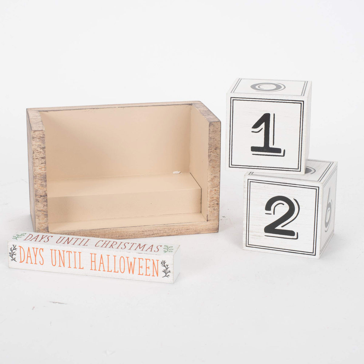 Q: What material is the Seasonal Countdown Calendar made from?A: The Seasonal Countdown Calendar is made from high-quality wood, ensuring durability and a charming aesthetic that complements various home decor styles.