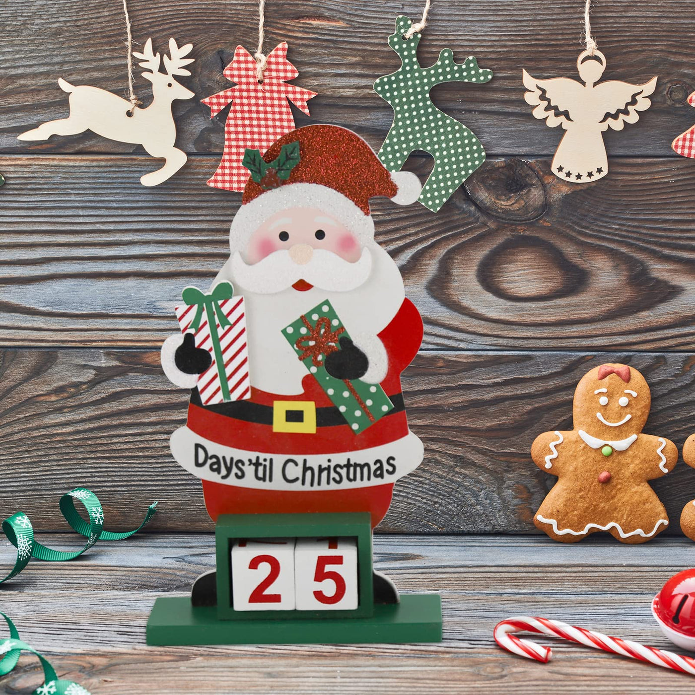 Sfozstra Christmas Advent Number Countdown Calendar,Wooden Square Number Tabletop Calendar Decoration, Santa Claus Home Office D