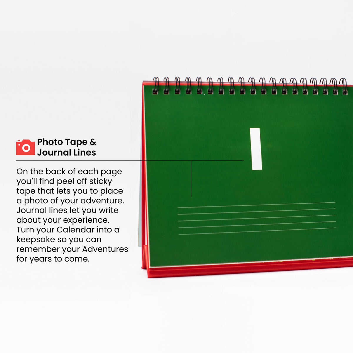 Q: What activities are included in The Adventure Challenge Advent Calendar?A: The Adventure Challenge Advent Calendar includes 12 unique scratch-off activities designed for holiday fun, ranging from holiday movie trivia to yard decoration scavenger hunts. Each activity is meant to bring you closer to your loved ones during the festive season.