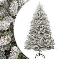 Vidaxl Artificial Hinged Christmas Tree - Lifelike Pvc Tips With Flocked Snow, Durable Metal Stand, Easy Assembly, Reusable Holiday Decor - 82.7" Green And White