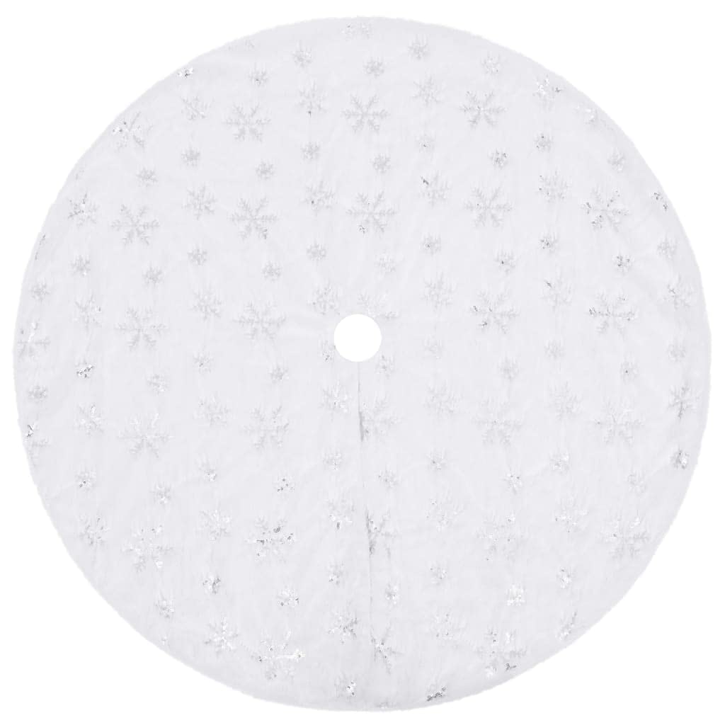 Vidaxl Luxury Christmas Tree Skirt – Elegant White Faux Fur Decor With Snowflake Embroidery – Durable Christmas Tree Stands & Skirts Ornaments – Non-Woven Backing