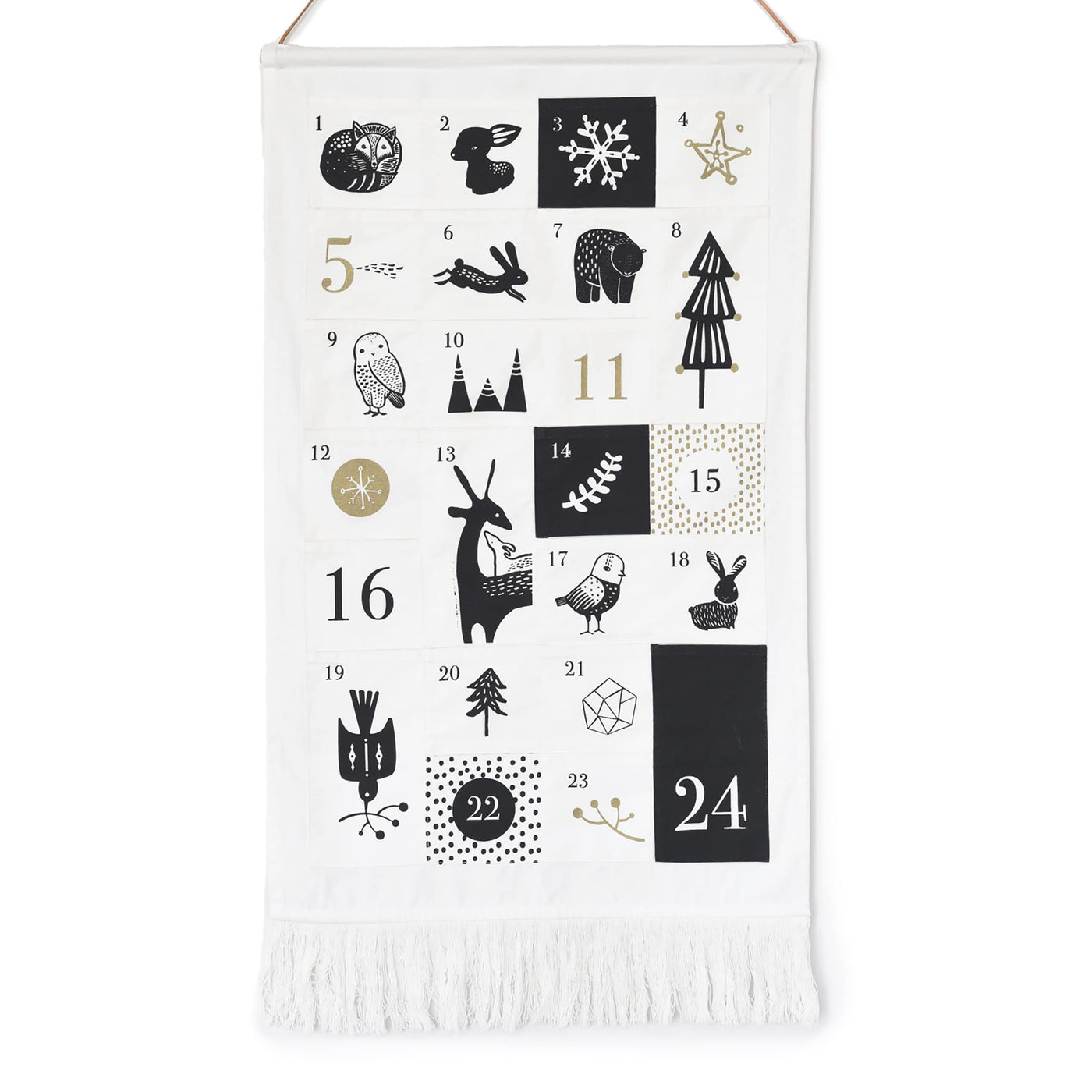 Wee Gallery Advent Calendar, Winter Animals - 24 Pocket Countdown To Christmas In Organic Cotton Canvas, Reusable Holiday Decora