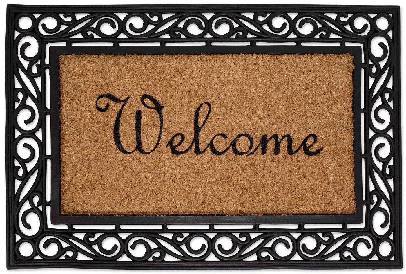 Birdrock Home - Classic Welcome Brush Coir Doormat - Vinyl Backed, Waterproof, Dirt Trapper, Heavy Duty - Indoor/Outdoor Entry, Porch, Garage, Scroll Border, Mud Catching, House Mats - Elegant Design