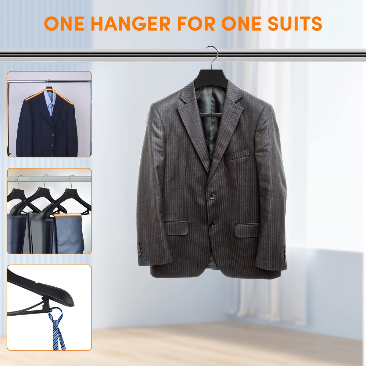 Features Product Name: Suit Hangers With Pant Holder/Sweater Hangers/Jacket Hanger Product Material: Plastic Product Color: Black Product Size: 17.3'' 9.4'' 2'' Product Weight: About 17.6Lbs Product Scope Of Application: Suit Hangers With Pants Bar Suitable For Suit, Camisole, Jacket, Pants, Sweater, Pants, Heavy Clothes &Amp; More Package Includes: 50 Black Plastic Suit Coat Hangers