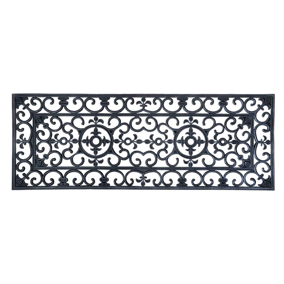 Make The Best First Impression At Your Front Door With This Doormat. It Is Durable And Easy To Clean With Just A Quick Rinse Under A Garden Hose. Large Rectangular Traditional Rubber Mat With Elegant Curls.