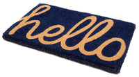 Fab Habitat Extra Thick Doormat - Handwoven, Durable - Natural Coir - Entryway, Front Door, Porch, Patio - Cursive Hello Dark Bl