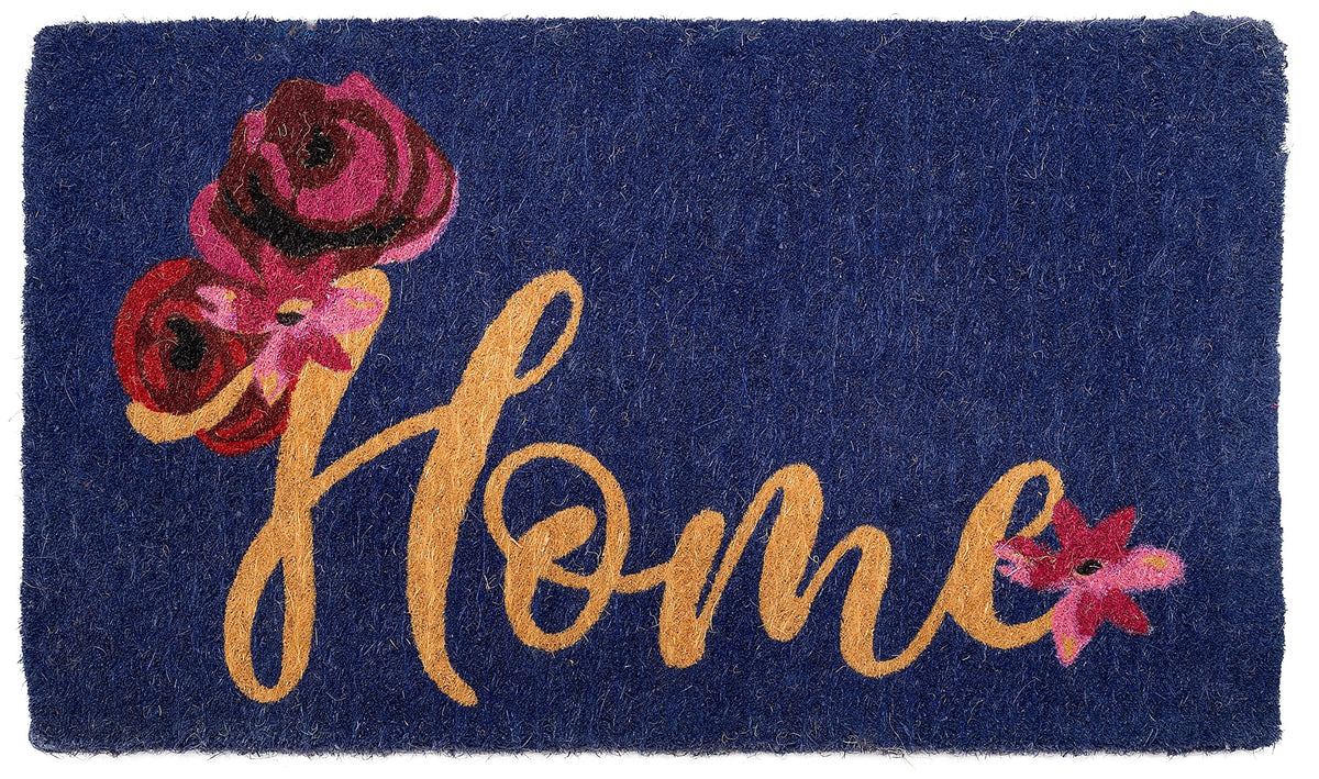 Fab Habitat Extra Thick Doormat - Handwoven, Durable - Natural Coir - Entryway, Front Door, Porch, Patio - Floral Home Dark Blue