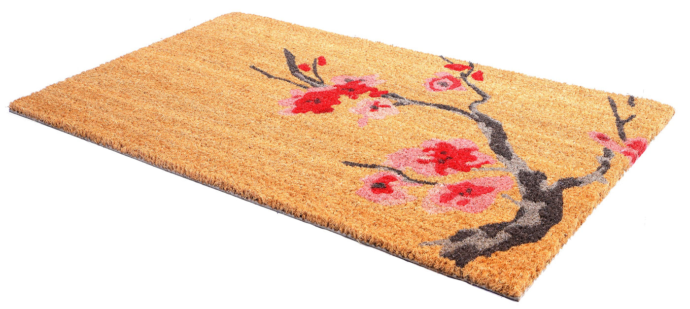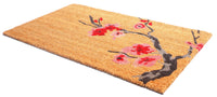 Fab Habitat Floral Non Slip Doormat - Durable, Thin - Natural Coir & Rubber - Entryway, Front Door, Porch, Patio - Cherry Branch