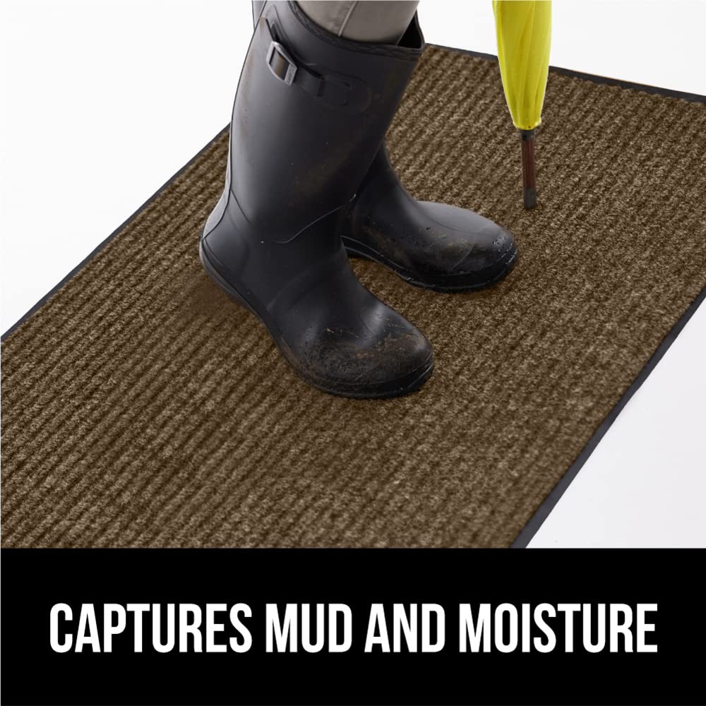 Gorilla Grip Waterproof Heavy Duty Traffic Guard Doormat, 2 Pack, Stain And Fade Resistant, Durable Rubber, Low Profile Door Mat, Shoe Scraper, Welcome Mats, 35X23, Brown