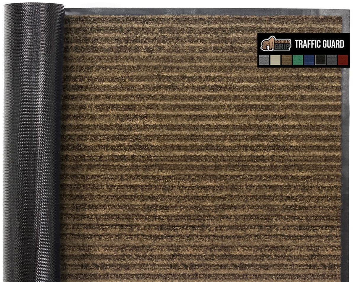 Gorilla Grip Waterproof Heavy Duty Traffic Guard Doormat, Stain And Fade Resistant, Durable Rubber, Low Profile Door Mat, Shoe Scraper, Welcome Mats For Entry, 47X35, Brown