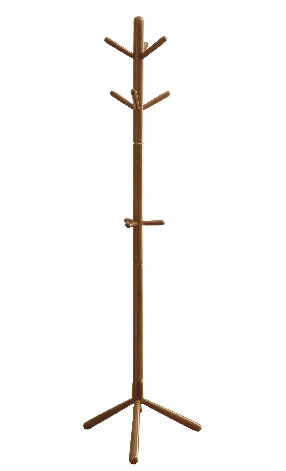 Monarch Specialties 2003, Hall Tree, Free Standing, 9 Hooks, Entryway, Bedroom, Wood, Brown, Contemporary, Modern Coat Rack, 16.25' L x 16.25' W x 69' H, Oak