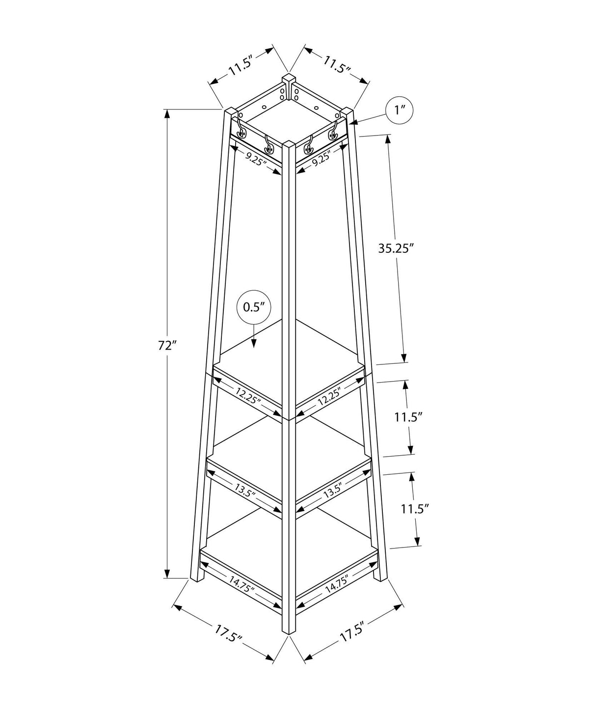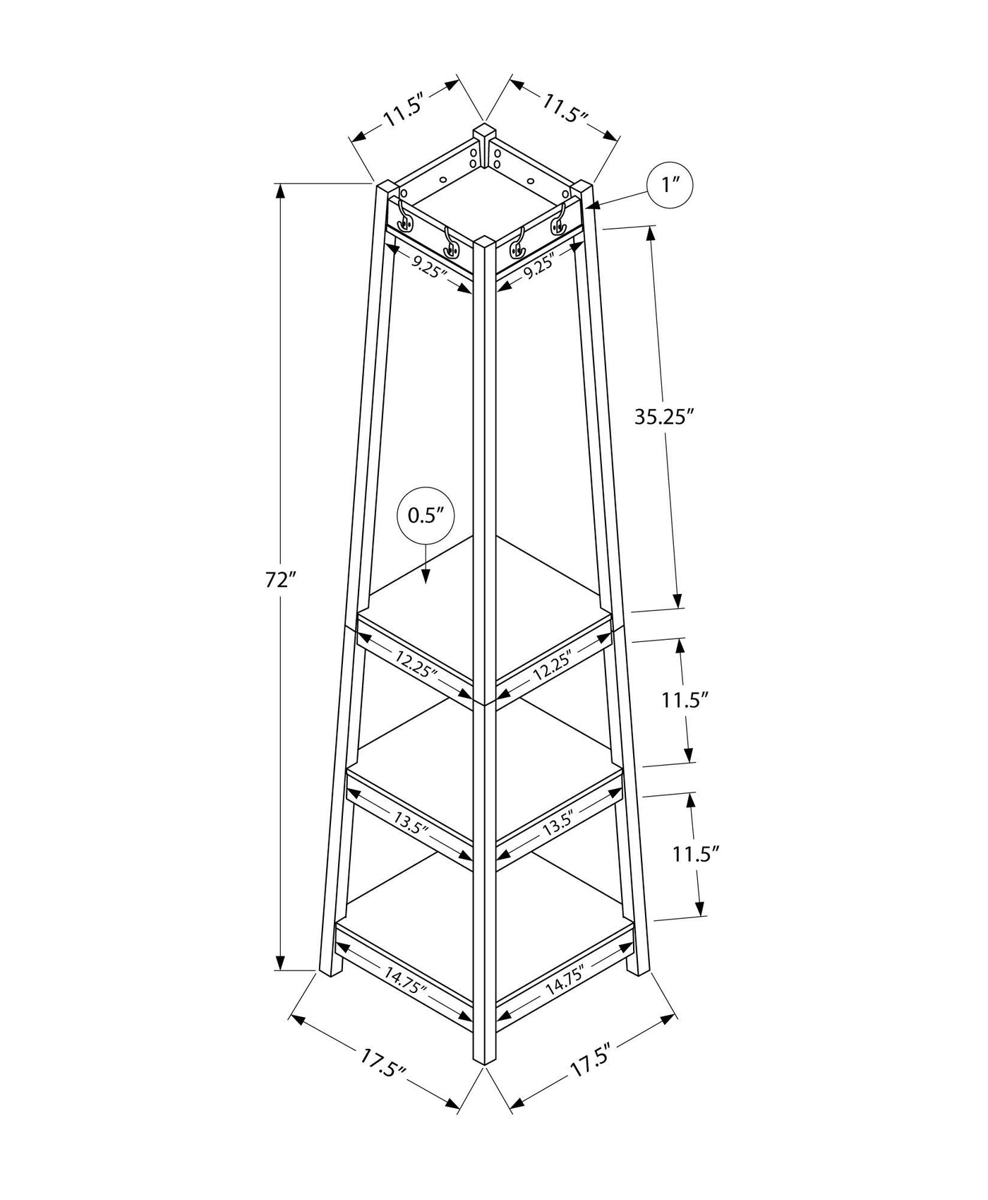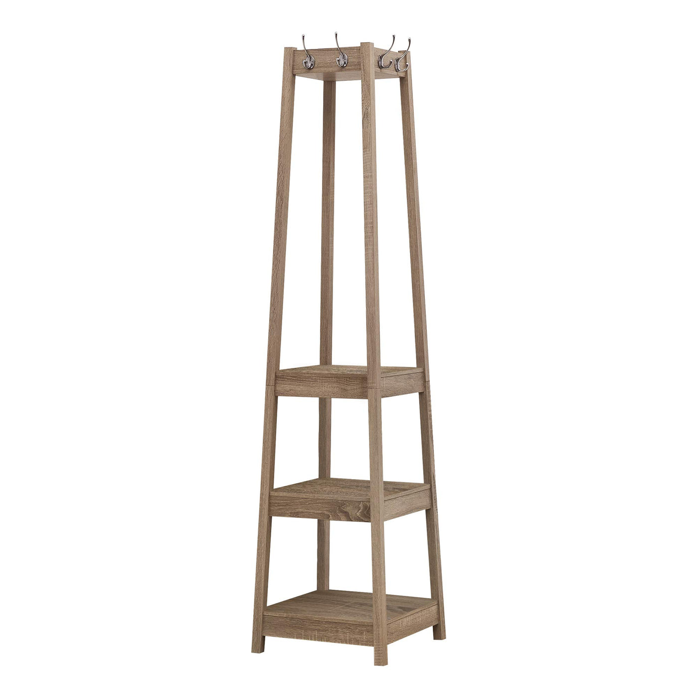 Monarch Specialties 4 Hooks and 3 Shelves Hanger Hanging for Entryway Hallway or Office Free Standing Hall-Tree, Dark Taupe