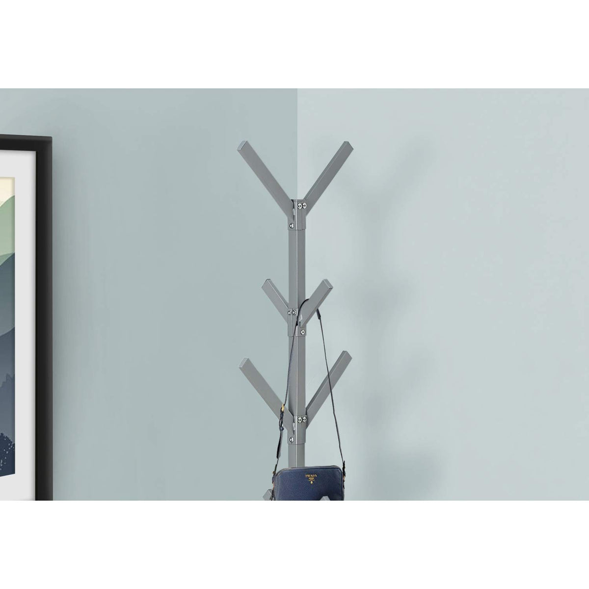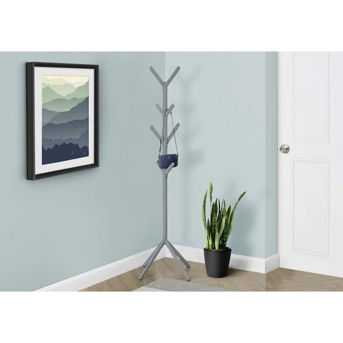 Monarch Specialties I 2058 Coat Rack, Hall Tree, Free Standing, 8 Hooks, Entryway, 70" H, Bedroom, Metal, Grey, Contemporary, Modern