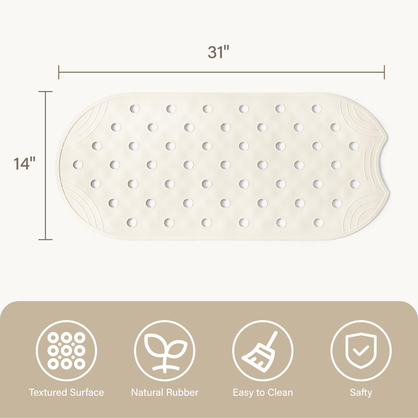 Selfsuite Rubber Bathtub Mat Shower Mat Non-Slip, 31X14 Inch, Bath Tub Floor Mat With Suction Cups And Drainage Holes, Ivory Whi