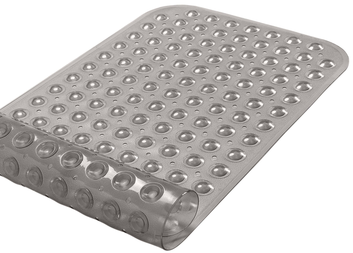 Q: How does the suction grip of the bath mat work?A: The bath mat features 167 powerful suction cups that create a strong hold on smooth surfaces, ensuring it stays in place while you bathe or shower, providing reliable slip resistance.
