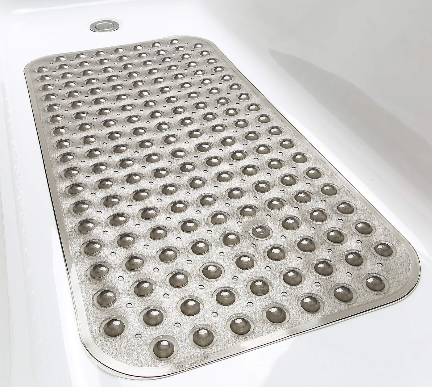 Note: For Smooth (Non-Textured) Tub & Shower Floors Only. Give Yourself The Peace Of Mind That Comes From Being Safe And Protected By This Premium Quality Large Non-Slip Pvc Bath Mat. Generous 31X16-Inch Size Provides Ample Coverage For Complete Slip-Resistant Protection From Slips And Falls. Excellent Safety And Stability, With 167 Powerful Suction Cups That Attach Firmly To Any Non-Textured Tub Or Shower Floor. Perfect Grip & Traction, With A No Slip Textured Surface And 144 Drainage Holes That Allow Water To Drain Away Safely, Leaving Your Feet Planted Securely On This Superior Bathtub Mat. Bpa Free, Phthalate Free, Allergen Free Vinyl. Ultra-Clean -- Machine-Washable For Years Of Safe, Healthy, Worry-Free Use. Great For Kids, Children And The Elderly And Disabled, As Well As General Use. With Heavy-Duty, High-Quality Vinyl Material, At 1.4 Lbs, This No-Slip Bath Mat Is Stronger Than A Rubber Bathtub Mat, Cleaner Than A Bath Rug And A Better Value Than Other Bath Tub Mats. Lifetime Guaranteed With A No-Questions-Asked Lifetime Return Policy. By Tike Smart.