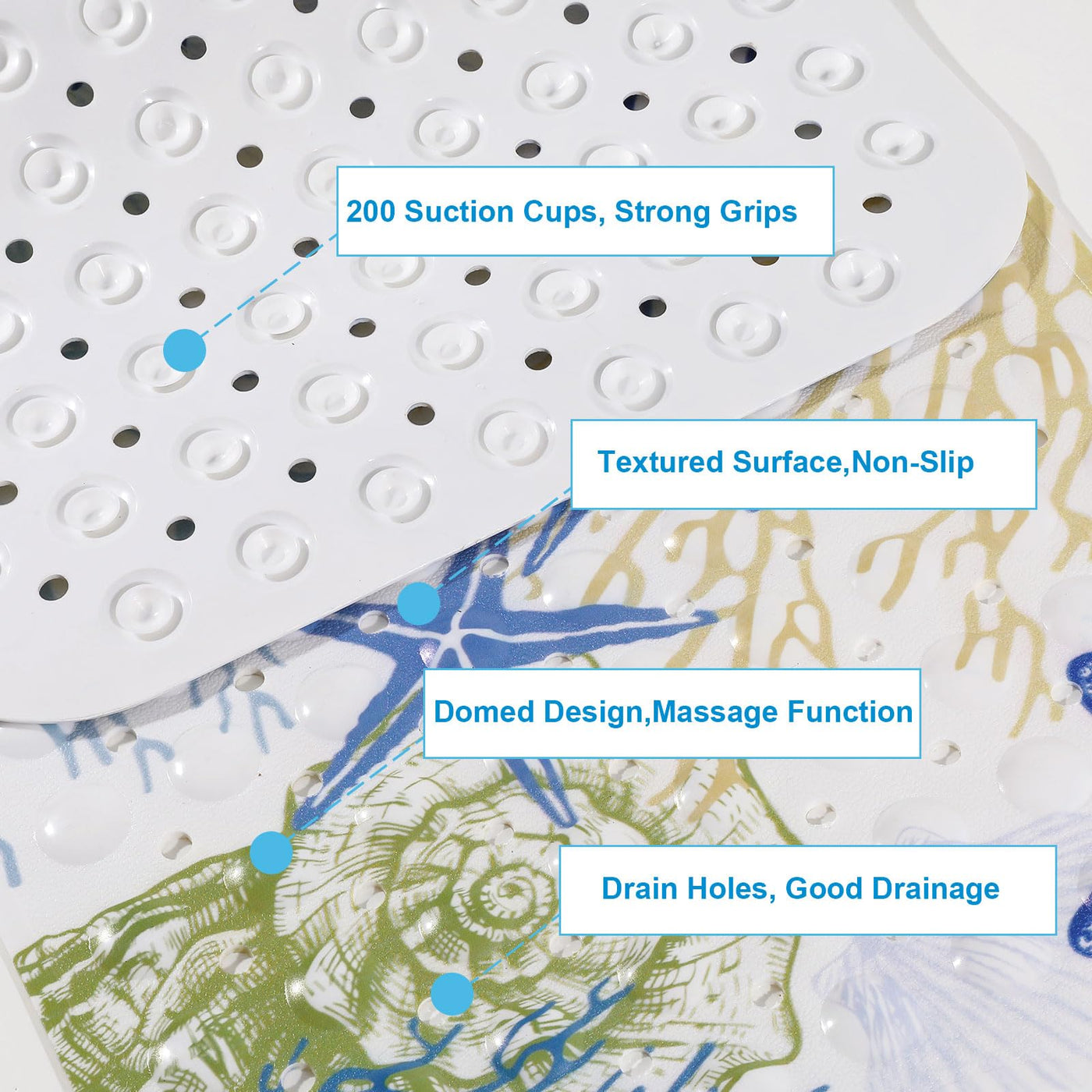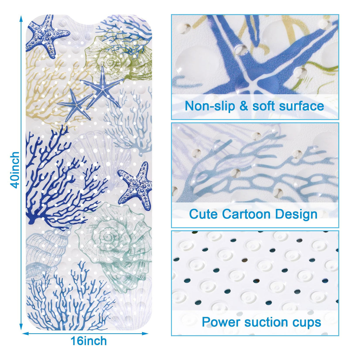 Topotdor Nautical Coastal Bathtub Mat Non Slip For Shower Tub, 40 X 16 Inch Extra Long Bath Mat For Elderly & Kids, Machine Wash