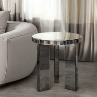 Optimize your space and add some charm to your room with the 20-inch silver and black faux marble and glass round mirrored end table. The silver coloration of the high quality glass base marries nicely with the black faux marble top. Reflective pieces of mirrored glass give this table a glamorous and unique look. A great accent on either side of the sofa or bed, this adorable end or side table is just what you need. You can match it with other pieces to get the ideal look for your place. 20.47-inch h x 18.66-inch w x 18.66-inch d.