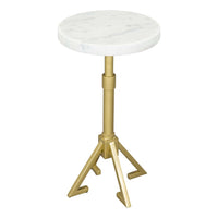 Optimize your space and add some charm to your room with the 22-inch white and gold marble and iron round pedestal end table. A gold iron frame is finished off with a white marble top that is the epitome of quality construction and design. An ideal location for placing your snacks and drinks, and a place to keep your lamp, frames, or other accessories. This versatile table is a great accent for most any room. 22-inch h x 11-inch w x 11-inch d.