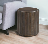 23'' Brown Distressed Solid Wood Round Scalloped Drum End Table
