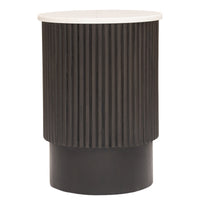 Show off your exquisite taste with this 25-inch black and white solid wood end table. The base of this table is made from solid wood in a black color that is a nice contrast to the white unavailable tabletop. An ideal location for placing your snacks and drinks, and a place to keep your lamp, frames, or other accessories. You can also use it as an entryway table to hold your keys. 25-inch h x 19-inch w x 19-inch d