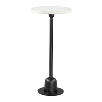 Distinctive in style the 25-inch white and black marble and aluminum round pedestal end table radiates a versatile charm. Quality construction from the black aluminum base combines with white marble of the top to give this table a fresh and updated look. A great accent on either side of the sofa or bed, this adorable end or side table is just what you need. This versatile table is a great accent for most any room. 25.2-inch h x 12-inch w x 12-inch d.
