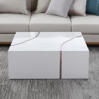 48'' White And Silver Glass and Wood Solid Base Coffee Table