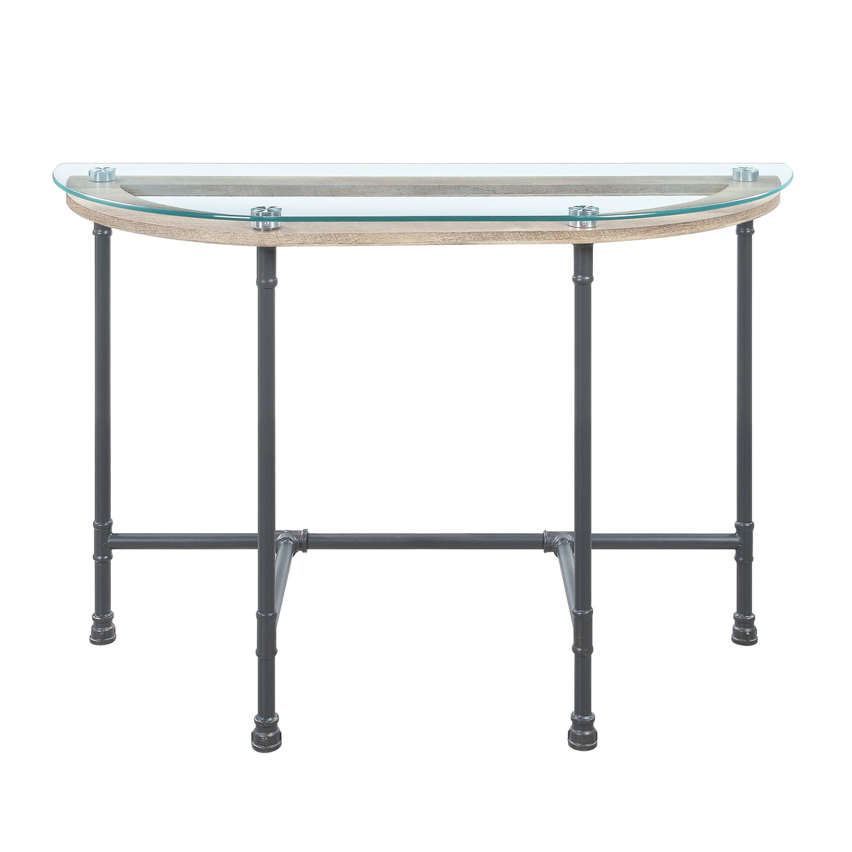 Create a cohesive space with this industrial statement piece built with unexpected materials. The tempered glass above a wooden tabletop adds depth, balance and creates contrast. Metal water pipes designed with "X" shaped support endows the table with a rough and unfinished look. Add a lot of energy and character to your room decor with the Brantley sofa table that mixes and matches different types of materials.
