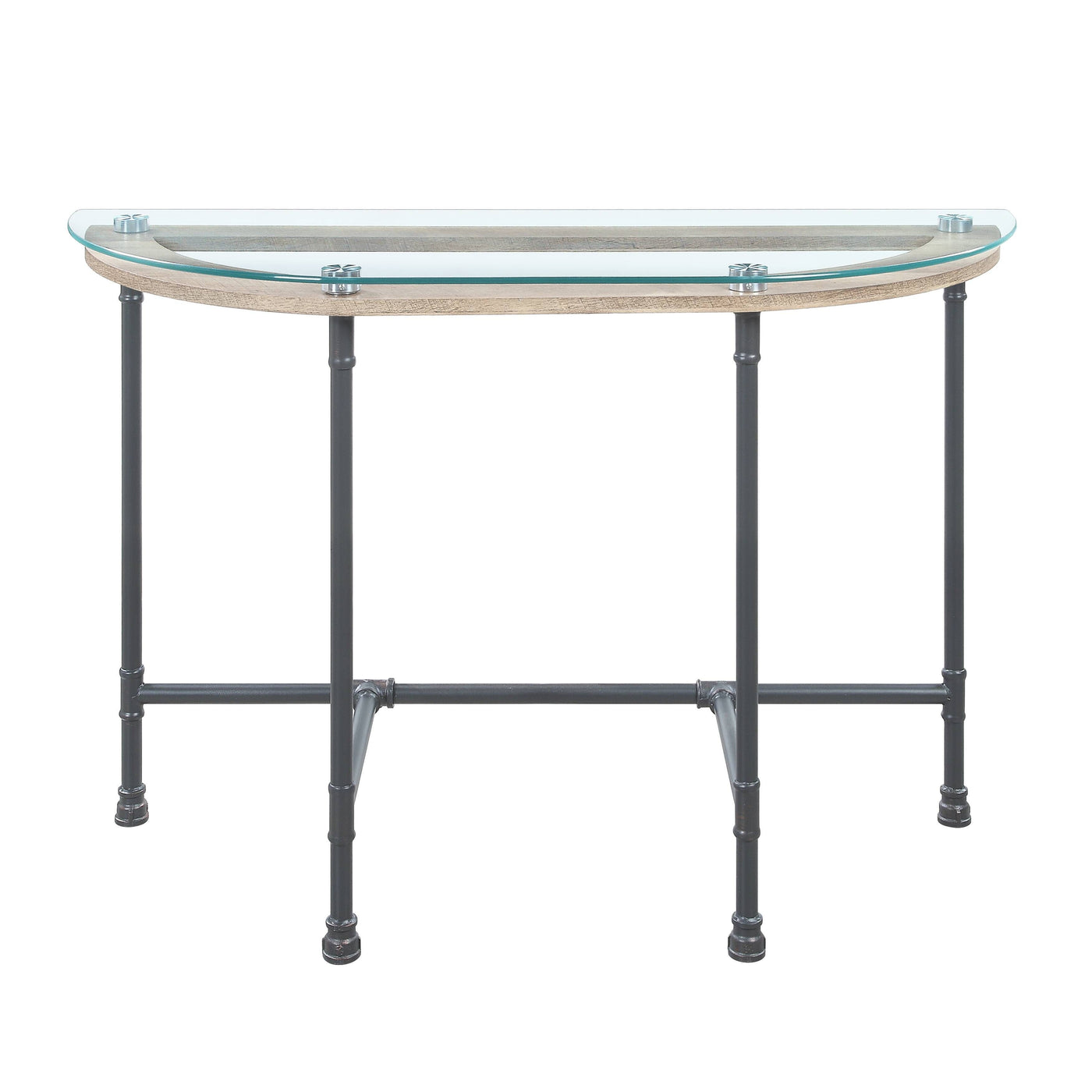 Acme Brantley Pipe Style Glass Top Sofa Table in Clear and Sandy Gray