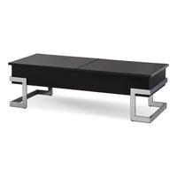 The Coalman Coffee Table Has It All, Good Looks With Its Chrome Modern Legs Exposed On The Outside Of A Black Box Top. Full Of Surprises, Like Lift Top Tray And Slide Top Storage With Additional Storage Under The Lift Up Tray. This Table Will Ensure Your Living Area Remains Clutter Free.