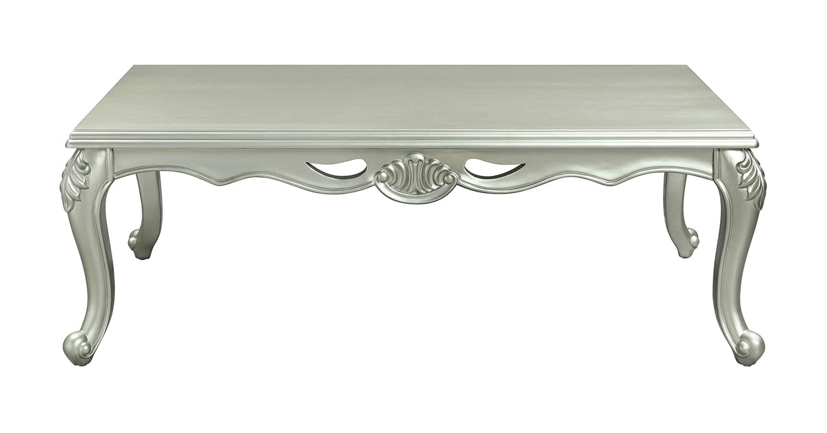 The coffee table is uniquely designed to impress and be added to your living room. This rectangular coffee table features a wooden design with floral trim apron trimmings. While elegantly reflecting its surroundings it combines glamour with modernism and offers a modern twist to enhance your room decor.