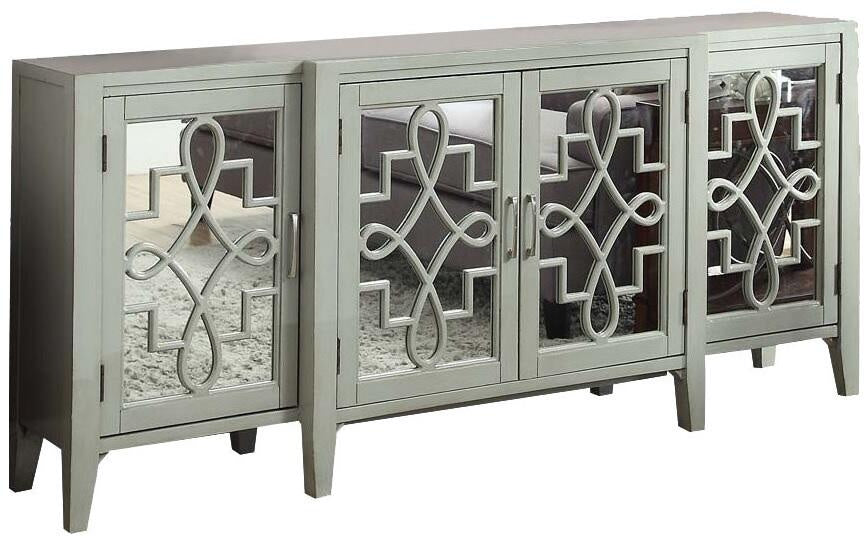 The sophisticated wine-bottle design of this elegant console table will put you in the mood to entertain and your guests in the mood to celebrate. Linked brushed gold rings on the doors evoke wine bottles stored on their sides. That same brushed gold is used on the console’s graceful base, as well as on the bar-style door hardware. The golden sparkle contrasts attractively with the console’s semi-gloss deep black finish.