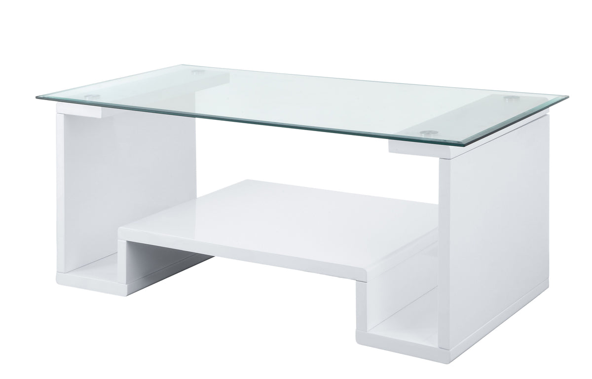 Geometric design base with clear table top blends a clean, modern minimal aesthetic into your home. This coffee table sits atop a functional and stylish structure that makes a great place to rest your magazines in the open compartment under the tabletop. The durable and long-lasting finish on the table base exudes a superb glossy high shine, while glass top surface adds light and depth to the whole. Add an element of modern elegance to your home with Nevaeh Coffee Table.