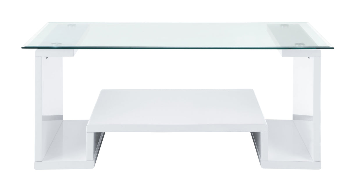 Acme Nevaeh Wooden Rectangular Coffee Table in Clear and White High Gloss