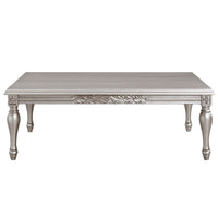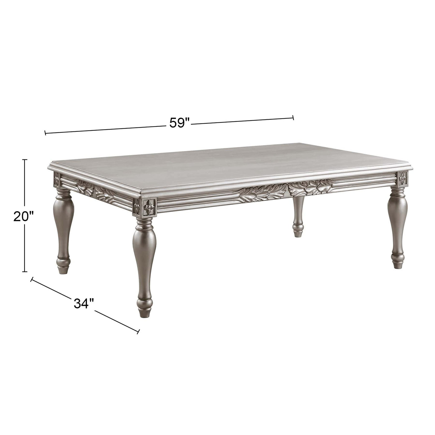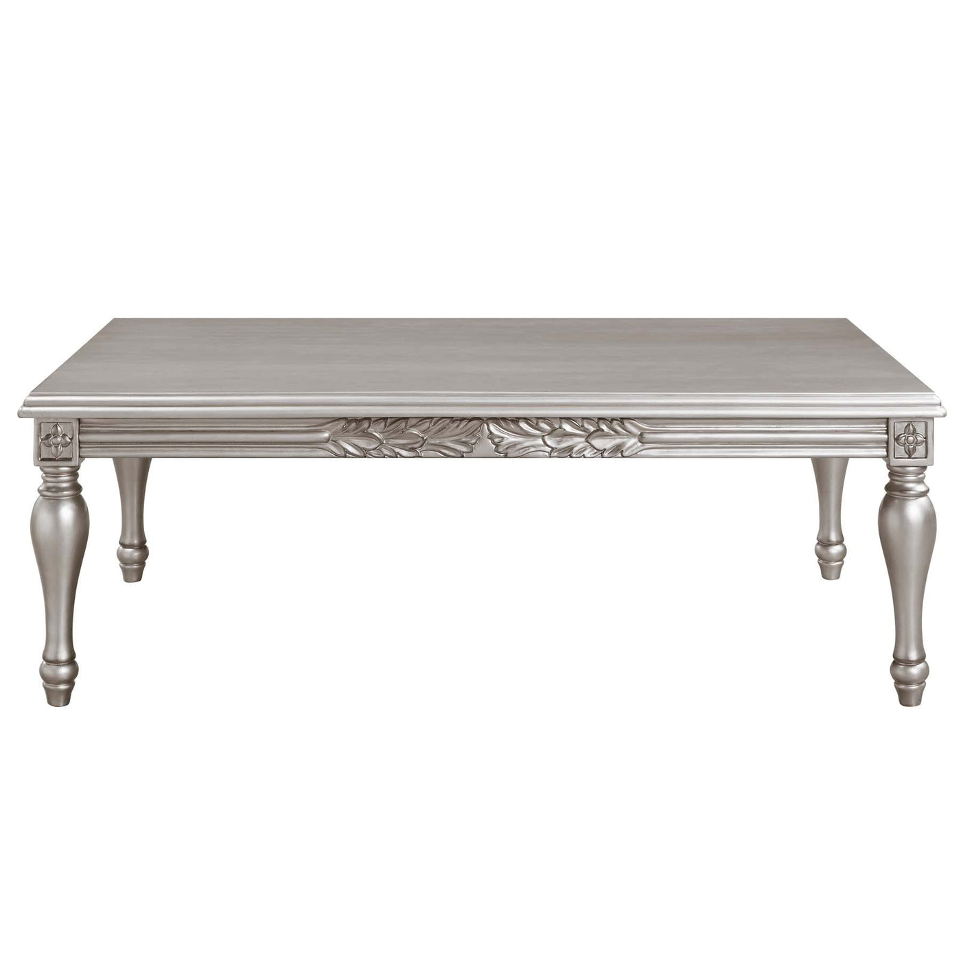 Filled with glitz, drama and romantic spirit, this attention-grabbing accent piece will bring a fresh twist to your home. It draws on elements from sleek modern aesthetic and vintage engraving style. Lustrous platinum finish are added to give fresh appeal to the wooden frame. Elaborate carving of flowers and leaves on the table aprons brings a touch of uniqueness and sophisticated beauty to the table. Elevate and liven up the overall space with the Pelumi Coffee Table that gives off a noble and extraordinary feel.