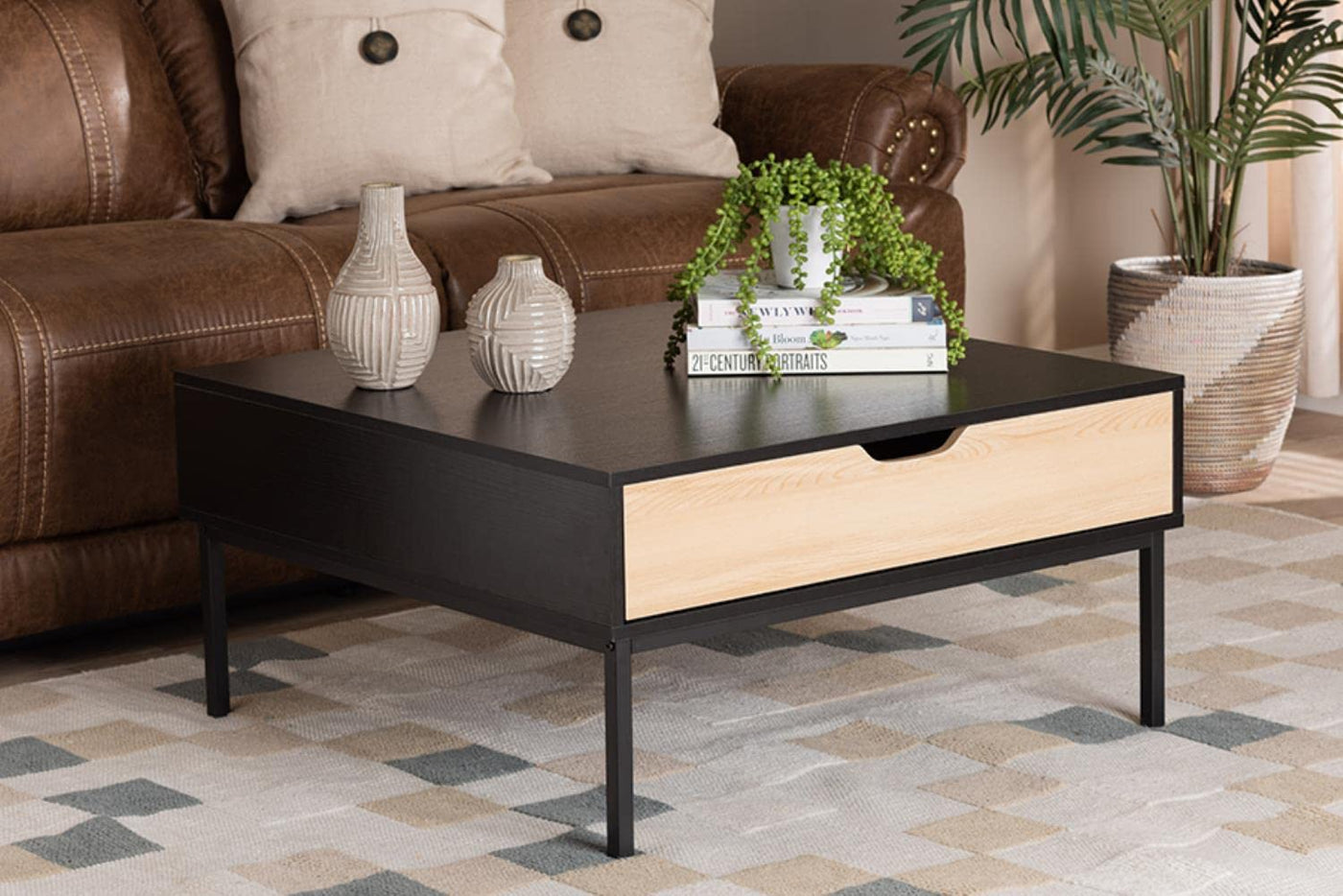 Baxton Studio Haben Modern and Contemporary Two-Tone Oak Brown and Black Finished Wood Coffee Table