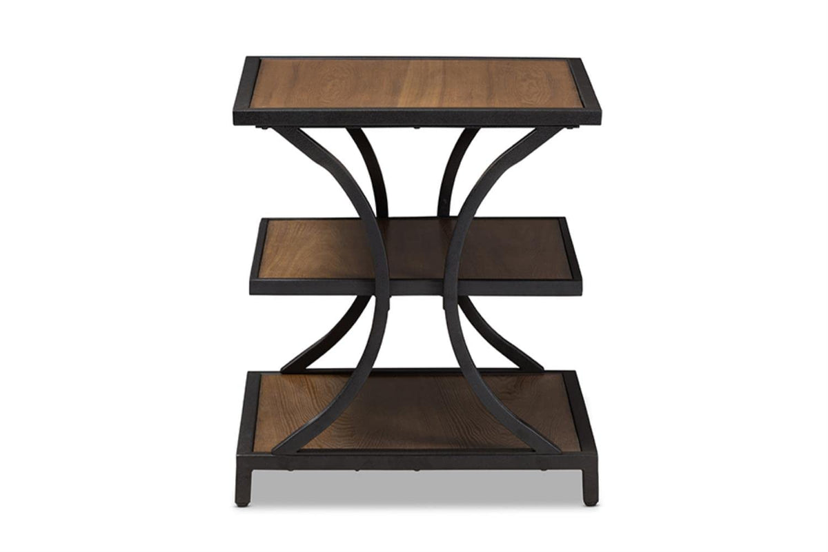 Baxton Studio Lancashire Rustic Industrial Style Oak Brown Finished Wood and Black Finished Metal End Table Brown//Medium Wood/Rustic Industrial/MDF/Metal